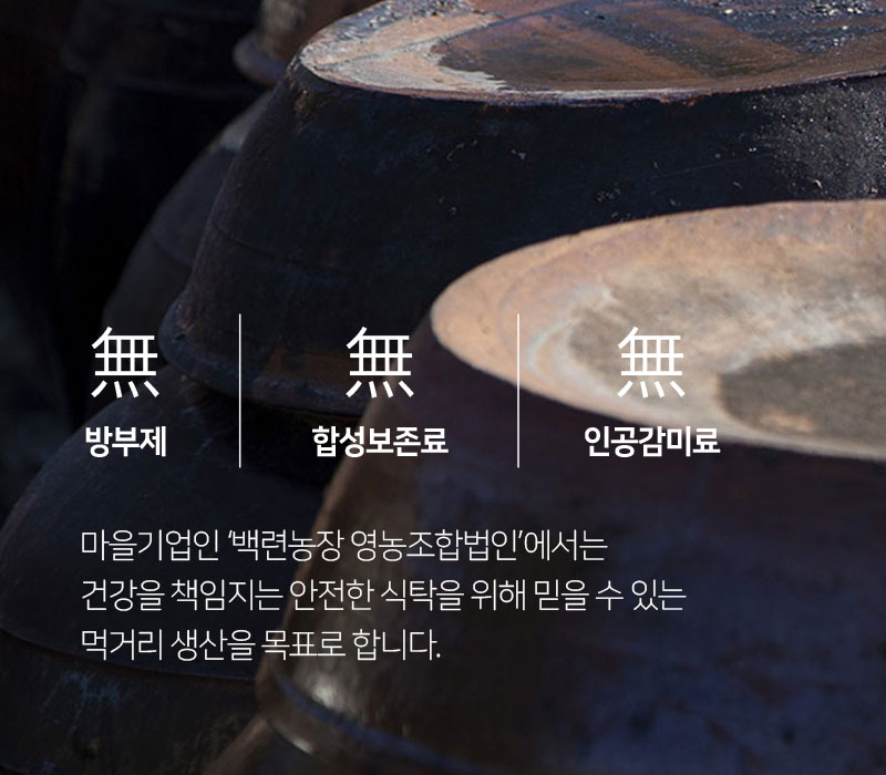 ¿ì¸® ³ó¹ÎÀÌ Á÷Á¢ ³ó»çÁþ°í ÀÚ¿¬ÀÌ ÁÖ´Â ÇØÇ³À» ¸Â°í ÀÚ¶õ ¿ì¸® ³ó»ê¹° Äá, °íÃß, ¿¬(¿¬ÀÙ,¿¬±Ù)À» ÀÌ¿ëÇÏ¿© ´ë´ë·Î ³»·Á¿À´Â °æÁÖ ±è¾¾ Á¾°«ÁýÀÇ ÀüÅë ¹æ½ÄÀ» À̾î¹Þ¾Æ ȲÅä ¹æ¿¡¼ ¼÷¼ºÇÏ°í ¹ßÈ¿½ÃŲ ¸ÞÁÖ¿Í Ã»±¹Àå, °íÃßÀåÀ» ¸¶À» ¾î¸£½Åµé°ú ÇÔ²² Á¤¼º²¯ ¹Ù¸¥¸¶À½À¸·Î »ý»êÇϰí ÀÖ½À´Ï´Ù.Á¤¼º°¡µæ ¹é·Ã"Àå"